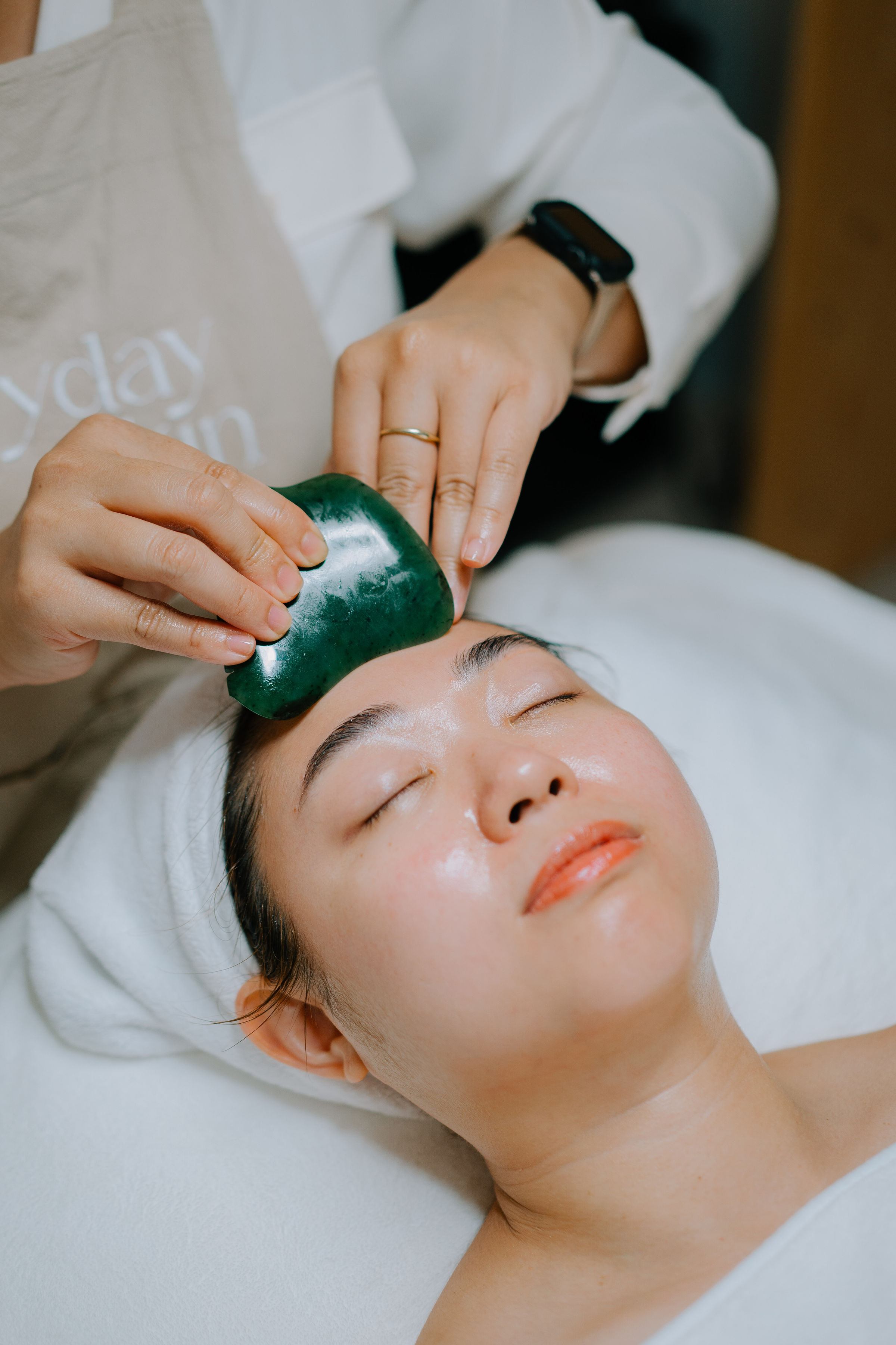 - Gua Sha and Bojin Merdian Therapy (Scalp, Face, Ears, Décolleté)